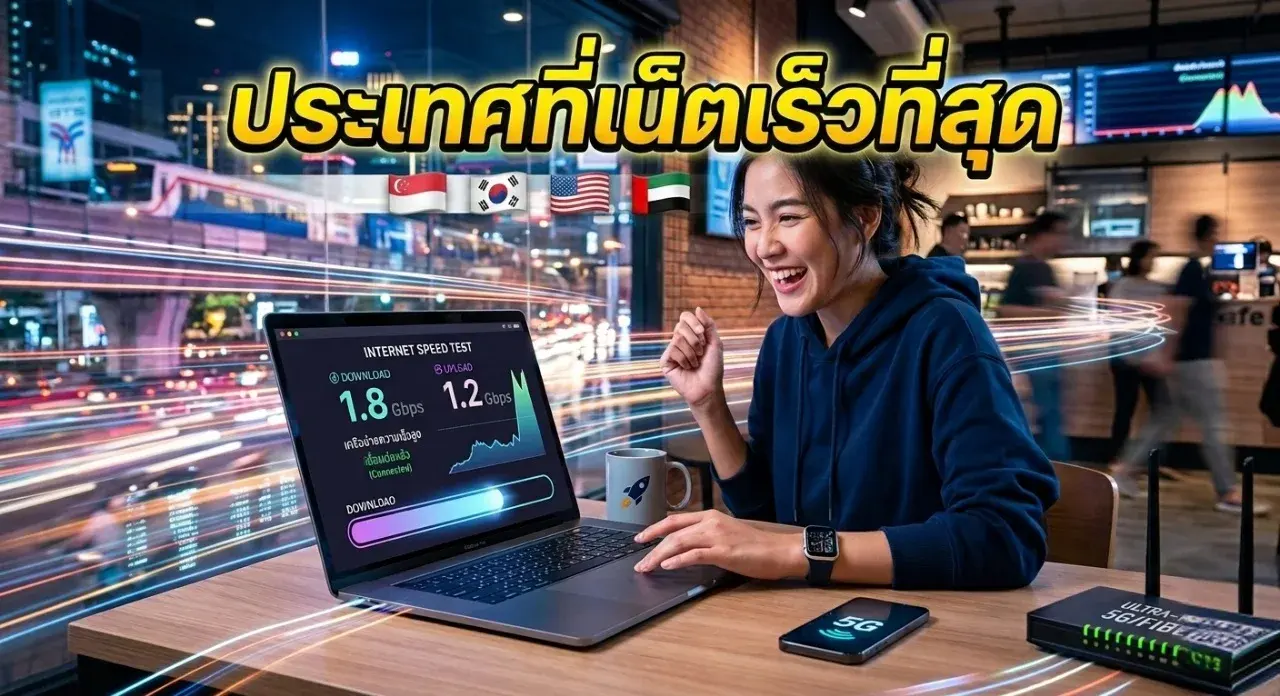 ความน่าสนใจ: ประเทศไทยเราก็ไม่ธรรมดาครับ ในปี 2026 นี้ ไทยอยู่อันดับที่ 8 ของโลก ด้วยความเร็วเฉลี่ยประมาณ 272 Mbps ซึ่งเร็วกว่าหลายประเทศในยุโรปและสหรัฐอเมริกาเสียอีก เนื่องจากบ้านเรามีการขยายโครงข่ายไฟเบอร์ (FTTH) ที่รวดเร็วและมีการแข่งขันสูงครับ