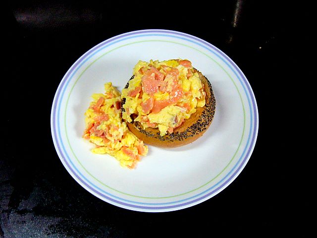 ตอนนี้ก็ลองมาทำไข่คนปลาแซลมอนรมควันบ้าง ดูแล้วหรูดี
