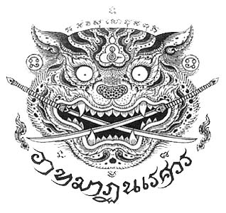 คลุมไตรภพ จะเป็นการ วาดดาบสองเล่ม ประสากันเป็นรูป เลข 8