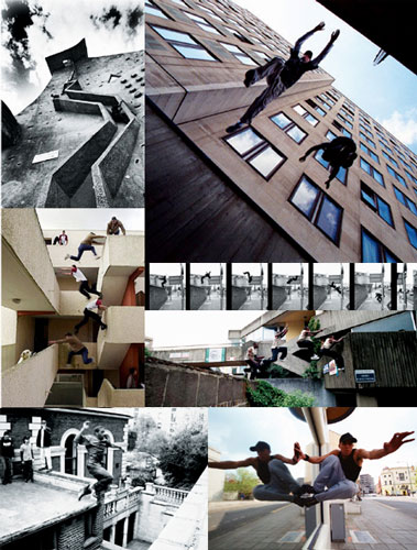 กีฬาใหม่ล่าสุดของ extreme sports มีชื่อว่า parkour หรือ free running (วิ่งเสรี) เป็นการผสมผสานยิมนาสติก ปีนเขา และความกล้าบ้าบิ่น (ที่ปกติกระทำโดยพวกตัวแสดงแทนหรือ stuntmen) ผู้เล่นต้องกระโดดข้ามตึกใกล้เคียง ปีนป่ายสิ่งก่อสร้างในเมือง ที่มีลักษณะทางสถาปัตยกรรมแตกต่างกันออกไป (เช่น ไต่ข้างตึกสูง ไต่เสาสูง ฯลฯ) ขณะนี้เริ่มมีเล่นกันในลอนดอนและเมือง Edinburgh