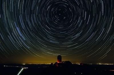 แต่กล้องถ่ายรูปที่ตั้งความเร็วซัทเตอร์ไว้ต่ำมาก จะสามารถเก็บภาพดวงดาวเป็นลักษณะเส้นโค้งหมุน