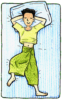 6. นอนตะแคงงอขาขึ้นข้างหนึ่ง : ไม่ดีละมั้ง... ท่านว่า ขี้ระแวง สงสัยอยู่ไม่สร่าง โดยไร้เหตุผล จู้จี้ขี้บ่นไม่รู้เวลา นอกจากจะขาด ความเป็นตัวของตัวเองแล้ว อาจจะพาลเป็น โรคประสาทได้ง่ายๆ... ทั้งตัวเอง และคนข้างเคียงน่ะแหล่ะ!