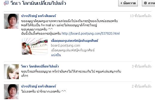 เมื่อคุณครูเล่นเฟสบุ๊คกับลูกศิษย์