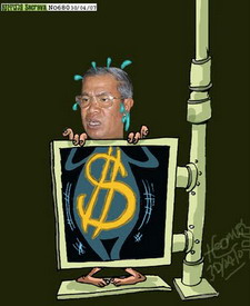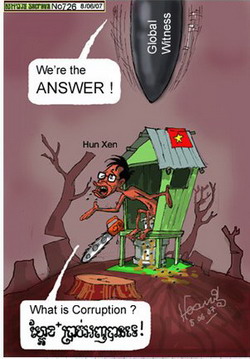 ภาพนี้ล้อเลียนเรื่องการโกงกินในประเทศกัมพูชาของหนังสือพิมพ์ต่างประเทศฉบับหนึ่ง