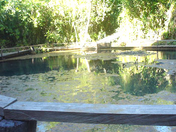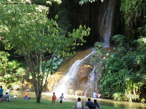 สู่ธารน้ำใสไหลรองรับอยู่เบื้องล่าง น้ำที่ตกลงมามีอุณหภูมิถึง 60 องศา
