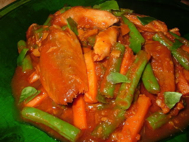 ผัดเผ็ดถั่วผักยาว ปลากระป๋อง