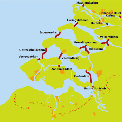 “Delta Works” ประกอบด้วยโครงการย่อยทั้งสิ้นถึง 16 โครงการ มีทั้งที่เป็นเขื่อน พนังกั้นน้ำ ประตูระบายน้ำ และกำแพงกันคลื่น