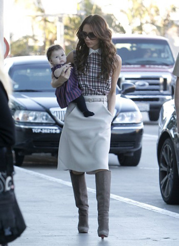 ก็จะไม่ให้เป็นอย่างนั้นได้อย่างไร เมื่อหนูน้อยฮาร์เปอร์ ปรากฏตัวมาพร้อมกับชุดสุดหรูลายทางจากแบรนด์ โคลอี้ของฝรั่งเศส ในราคาเบา ๆ 30 ปอนด์ (หรือประมาณ 1,500 บาท) ตัดกับเลกกิ้งสีดำสุดชิค พร้อมกับโบว์บนศีรษะที่ดูเข้ากั๊น เข้ากัน ขณะที่คุณแม่ป็อบสตาร์สาวซึ่งผันตัวเองมาเป็นดีไซเนอร์นั้นสวมเสื้อแขนกุด กระโปรงสีขาว เสริมด้วยบูธสูงระดับเข่า สะดุดตาใครต่อใครไม่น้อยเลยล่ะ