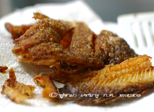 มันจะแกะเอาเนื้อออกง่าย แล้วค่อยนำไปทอดอีกทีหนึ่ง