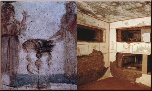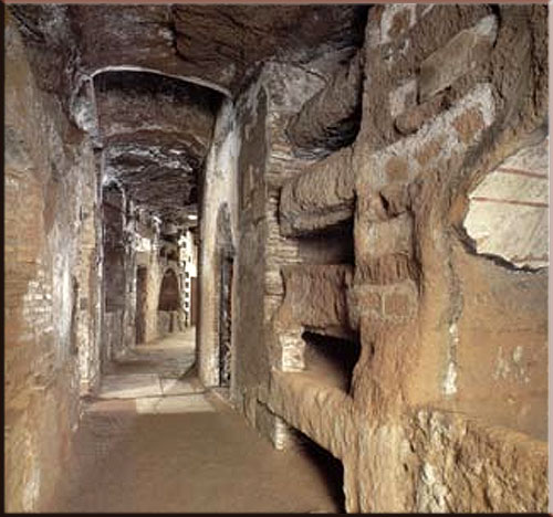 หลุมฝังศพใต้ดินแห่งอเล็กซานเดรีย Cata Comb สุสานของชาวโรมันในอดีต สุสานใต้ดินแห่งนี้มีสามชั้น ชั้นที่ 1 มีไว้สำหรับเตรียมการปลงศพ ชั้นที่ 2 เป็นที่เก็บรักษา และชั้นที่ 3 ใช้เป็นที่รวมญาติเพื่อระลึกถึงผู้ตาย โดยมีการเลี้ยงสังสรรค์กันทั้งวัน ซึ่งเล่ากันว่าตอนที่นักโบราณคดีค้นพบที่นี่เป็นครั้งแรก บนโต๊ะยังมีขวดไวน์และจานวางอยู่