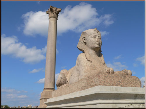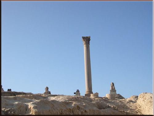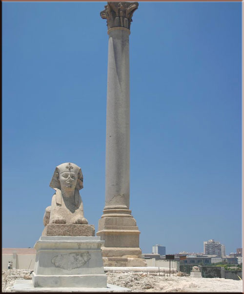 เสาปอมเปย์ Pompey Pillar สิ่งสำคัญโบราณในสมัยโรมันปกครองอียิปต์ เป็นเสาแกรนิตสูง 27 เมตร ปอมเปย์ เป็นชื่อเพื่อนสนิทของ จูเลียตซีซ่าร์ ซึ่งภายหลังทั้งสองได้กลายเป็นศัตรูกัน และปอมเปย์ได้หลบหนีมายังเมืองอเล็กซานเดรียในอียิปต์ ก่อนถูกฆ่าตายและเล่าขานกันว่า จูเลียตซีซ่าร์ ได้ทำพิธีเผาศรีษะของปอมเปย์ที่เสานี้