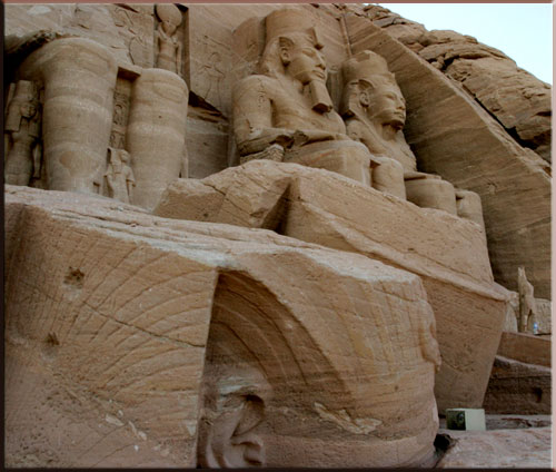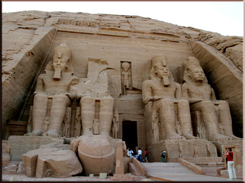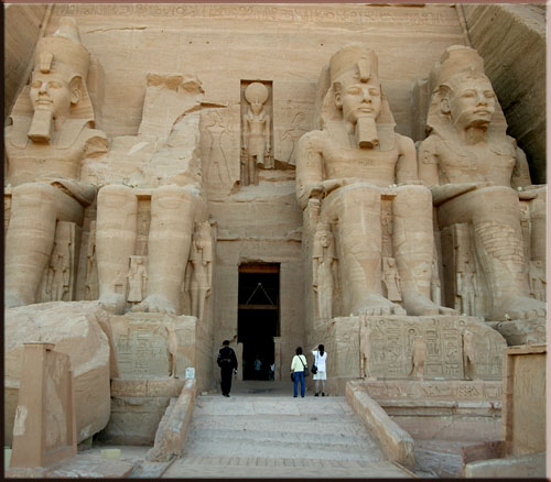 “มหาวิหารอาบูซิมเบล” ซึ่งประกอบด้วยวิหารใหญ่ของ ฟาโรห์รามเสสที่ 2 และวิหารของเนเฟอร์ตารี ซึ่งเป็นมเหสีที่รักของพระองค์ วิหารอาบูซิมเบลงดงามยิ่งใหญ่และมีชื่อก้องโลกเพราะเมื่อมีการสร้างเขื่อนขนาดยักษ์ที่อัสวาน ทำให้วิหาร 17 แห่งจมอยู่ใต้น้ำ จนองค์การยูเนสโก้ต้องมาช่วยยกให้พ้นน้ำและมหาวิหารอาบูซิมเบลก็ถูกยกขึ้นสูงจากพื้นดิน 65 เมตร ซึ่งเป็นงานที่ยากมาก ใช้เวลาทั้งสิ้น 4 ปี สิ้นค่าใช้จ่าย 40 ล้านเหรียญสหรัฐ