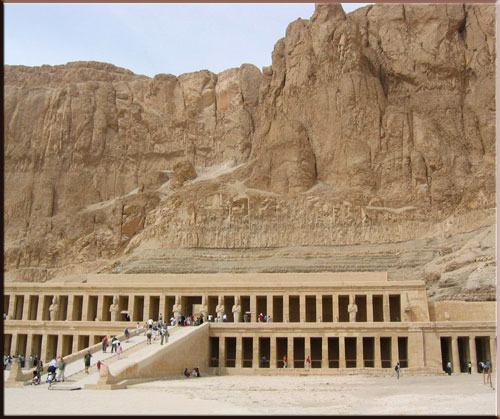 “วิหารฮัตเชพซุต” วิหารนี้ได้รับการออกแบบโดยสถาปนิกคนสนิทชื่อ “เซเนมุท” เมื่อกว่า 3,500 ปีมาแล้ว เป็นสถานที่ประดิษฐานพระศพของ ฟาโรห์หญิงฮัตเชพซุต หรือที่รู้จักกันในนามของ “ราชินีหนวด” ซึ่งเป็นฟาโรห์หญิงพระองค์เดียวในประวัติศาสตร์อียิปต์โบราณ ซึ่งในสมัยของพระนางประเทศชาติเจริญรุ่งเรืองมาก