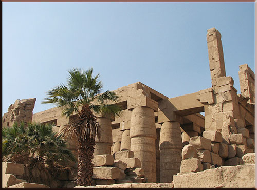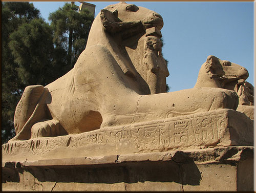 วิหารคาร์นัค ซึ่งประกอบด้วยอาคารใหญ่โตมากมายหลายหลัง และเป็นวิหารโบราณที่ใหญ่ที่สุดแห่งหนึ่งของโลก ได้รับการปฏิสังขรณ์จากฟาโรห์หลายพระองค์ สร้างขึ้นเพื่อบูชา ครอบครัวเทพเจ้า ทางเข้าวิหารมีรูปแกะสลักของสฟิงซ์เป็นแถวสองข้างทาง แต่เป็นสฟิงซ์ที่มีหัวเป็นแพะใช้เป็นทางเดินเชื่อมระหว่างวิหารลักซอร์ และวิหารคาร์นัคในอดีตกาลและที่สวยงามมากคือ Hypostyle Hall หรือ ห้องเสา ซึ่งประกอบไปด้วยเสาสูง 134 ต้น เรียงเป็นแถว 4 แถว สลักด้วยอักษรและภาพ