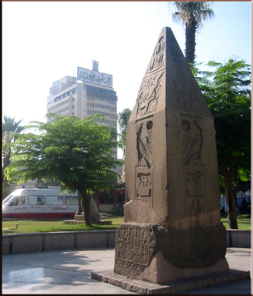 ตั้งอยู่สองต้นเคียงกันแต่ปัจจุบันเสาต้นหนึ่งถูกนำไปตั้งไว้ที่จัตุรัสคองคอร์ดกรุงปารีส เพื่อเป็นของขวัญแด่กษัตริย์นโปเลียนของฝรั่งเศสในปี ค.ศ.1835 ในสมัยของ ฟาโรห์รามเสสที่ 2 พระองค์ได้โปรดให้สร้างอุทยานหน้าวิหารนี้และตกแต่งด้วยรูปประติมากรรมทำด้วยหินแกรนิต ควอร์ทไซต์