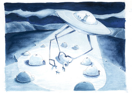 สัญชาตญาณนายพรานบ่งบอกว่ามีบางสิ่งบางอย่างผิดปรกติอย่างมหันต์ บางสิ่งบางอย่างไม่ชอบมาพากลเกิดขึ้นกับชุมชนแห่งนี้ แสงจันทร์ยามค่ำ**censor**ส่องลงบนเพิงที่พักอาศัยชาวเอสกิโมเกิดเป็นภาพเงาทึมๆ แต่ไม่มีวี่แววการเคลื่อนไหวของสิ่งมีชีวิต ไม่มีแม้แต่เสียงสุนัขลากเลื่อนเห่าหอนเมื่อได้ยินเสียงฝีเท้าของคนแปลกหน้า