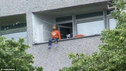ภาพที่ชวนหวาดเสียวของเด็กน้อยวัย 2 ขวบที่กำลังเดิน และนั่งตรงระเบียงที่มีความสูง 100 ฟุต ทำให้คนที่เห็นต่างกลัวว่าเด็กน้อยที่อยู่ในวัยกำลังเดินเตาะแตะจะพลาดตกลงมาเสียชีวิต โดยไม่ทราบว่าแม่ของเด็กอยู่ที่ไหน เหตุใดจึงปล่อยให้เด็กน้อยปีนขึ้นไปอยู่ในที่อันตรายเช่นนี้