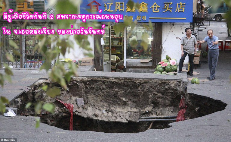 เกิดถนนยุบอีกครั้ง โดยในครั้งนี้เกิดที่เมืองฮาร์บิน ถนนเหลียวหยาง จังหวัดเฮยหลงเจียง เมื่อวันจันทร์ที่ผ่านมา เวลาบ่าย 4 โมง ตามเวลาท้องถิ่น เป็นเหตุทำให้มีผู้เสียชีวิตทันที 2 ศพ และยังไม่ทราบชะตากรรมอีก 3 คนที่ตกอยู่ในหลุมลึก ซึ่งหนึ่งในนั้นเป็นเพียงเด็กทารกเพศหญิง 14 เดือนรวมอยู่ด้วย