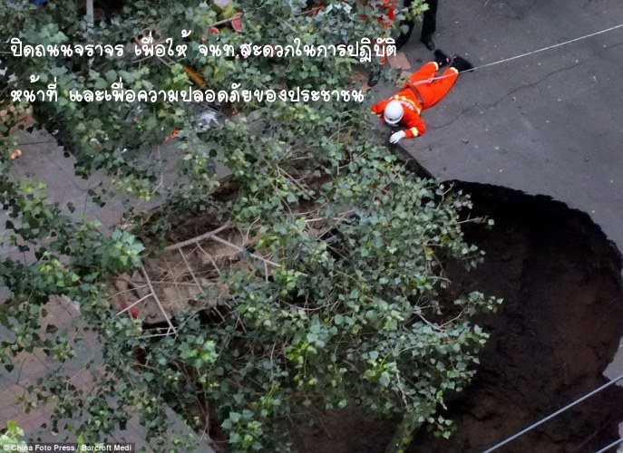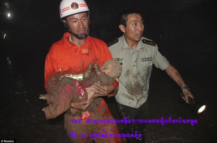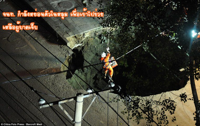 จนท.กู้ภัยเข้าไปช่วย ต้องผ่านหลุมลึก 20 ฟุต ที่มีอุโมงค์ระบายน้ำ หลุมดังกล่าวมีขนาดกว้าง 10 เมตร และเพื่อความปลอดภัยของประชาชน และให้จนท.สะดวกในการปฏิบัติหน้าที่ จำต้องปิดเส้นทางจราจร และสั่งอพยพชาวบ้านที่อยู่บริเวณนั้น จนเมื่อเข้าช่วยนำร่างผู้บาดเจ็บออกมาได้สำเร็จ ซึ่ง จนท. สามารถนำร่างผู้เสียชีวิตออกมาได้ ซึ่งตกลงไปในความลึกถึง 33 ฟุต เหลือแต่ทารกวัย 14 เดือนที่รอดราวปาฏิหาริย์ มีบาดแผลเล็กน้อยที่ศีรษะเท่านั้น...