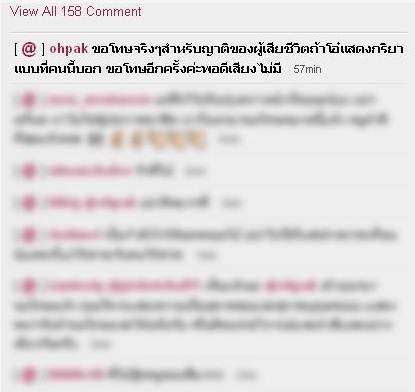 "ขอโทษจริงๆ สำหรับญาติของผู้เสียชีวิตถ้าโอ๋แสดงกริยาแบบที่คนนี้บอก ขอโทษอีกครั้งค่ะพอดีเสียงไม่มี"