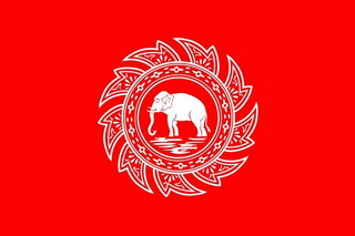 ธงผืนแดงอย่างเดียวไม่อาจแยกได้ว่าประเทศใดๆจึงโปรดให้ใช้พิ้นสีแดงและเอาจักรออกเหลือเพียงช้างเผือกเปล่า สำหรับราษฎรใช้ แต่สำหรับ