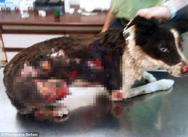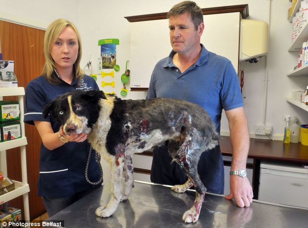 สุนัขพันธุ์คอลลี่ (สุนัขไล่แกะ) ชื่อ โคดี วัย 3 ปี ในเมืองอันทริม ประเทศไอร์แลนด์เหนือ ถูกอันธพาลในเสือหมวกสีดำบุกเข้ามาถึงบ้าน และจับมันย่างสดในเตาย่างบาบีคิว จนมันได้รับบาดเจ็บสาหัสเกิดขึ้นเมื่อเวลา 3 ทุ่มของวันอาทิตย์