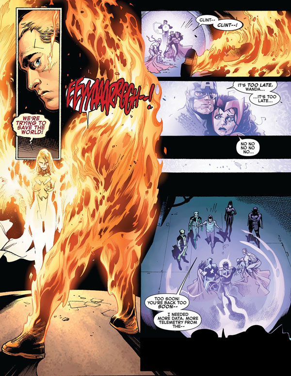แต่ยังมีเหล่า Avengers ที่ยังไม่เชื่อมั่นในการกระทำของเหล่า Phoenix Five และเชื่อว่าลางร้ายกำลังคืบคลานเข้ามา