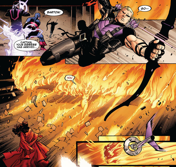 ส่วน Hawkeye (Clint Barton) ยิงธนูแสงใส่ Havok น้องชาย Scott จนร้อง แอร๊ยยยยยย