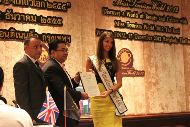 ภายหลังจาก บริษัท มีเดีย เอ็มไพร์ จำกัด โดย นายศุภณัฐ ดอนจันทร์ ประธานกรรมการ ซึ่งเป็นผู้ได้รับลิขสิทธิ์แต่เพียงผู้เดียวในการจัดงานประกวดนางงามท่องเที่ยวโลก Miss Tourism World 2012 จาก มร. เดวิด ซิงค์ (Mr. David Singh) ประธานองค์การการท่องเที่ยวโลก (Tourism World Organization) ได้จัดงานแถลงข่าว ประกาศการจัดงานประกวดนางงามการท่องเที่ยวโลกประจำปี 2012 (Miss Tourism World 2012 Final) ที่กำลังจะมีขึ้นเป็นครั้งแรกในประเทศไทยและทวีปเอเชีย ในระหว่างวันที่ 2-16 ธันวาคม 2555 นี้ ซึ่งจะมีสาวงามจาก 60 ประเทศทั่วโลก เดินทางมาร่วมประกวดในประเทศไทยนี้พร้อมกัน โดยวันสุดท้ายจะเป็นรอบตัดสิน จัดที่โรงละครสยามนิรมิต กรุงเทพ ฯ โดยได้แจ้งให้คนไทยทราบไปแล้วก่อนหน้านี้นั้น.