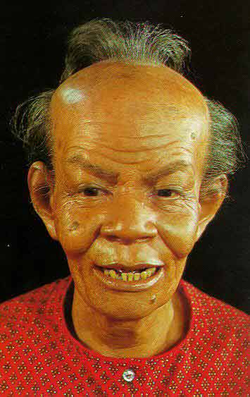 ๘. ครึ่งซีกพระจันทร์ - ล้านด้านหน้า จากหน้าผากเว้าเข้าไปเป็นครึ่งวงกลลมแค่ครึ่งกระบาล ลักษณะเป็นจันทร์ครึ่งซีก (หาภาพไม่ได้)