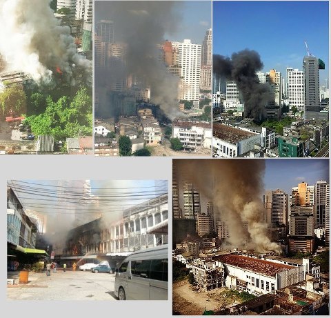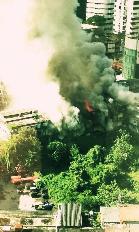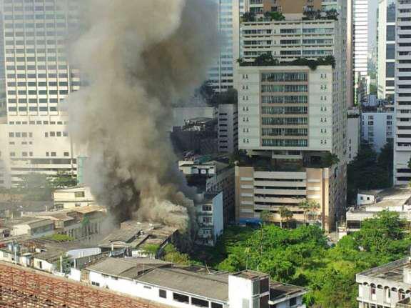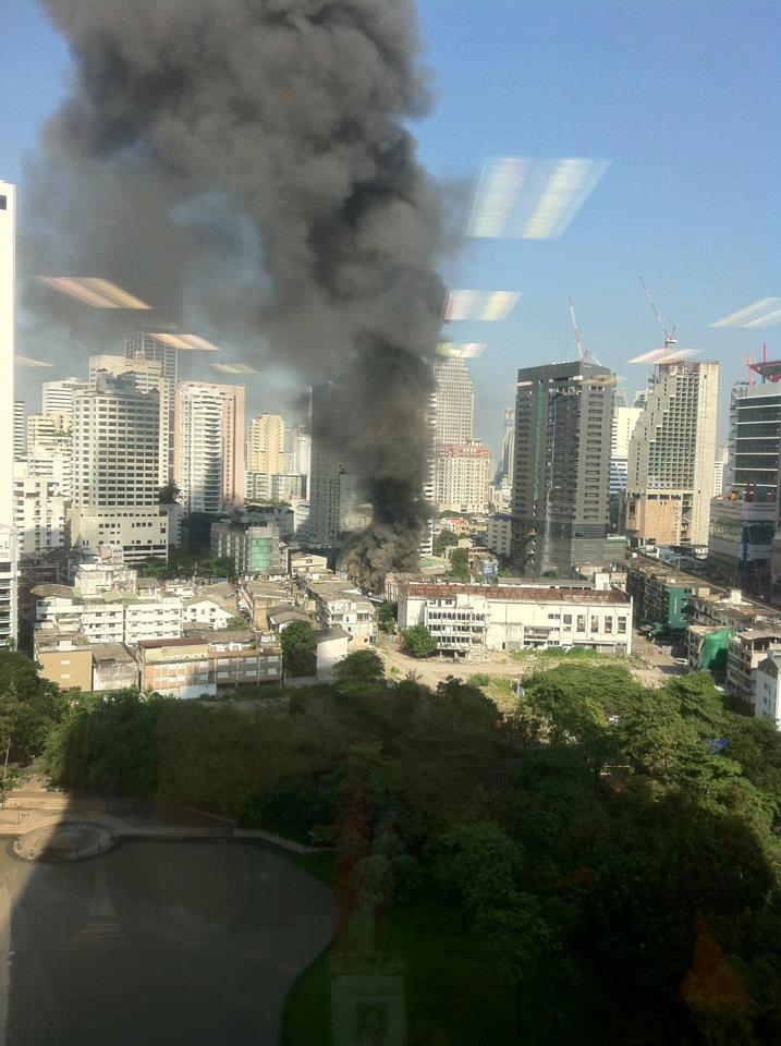 ระทึกแต่เช้า ตึกฝั่งตรงข้ามไฟไหม้ น่ากลัวมากก ตึกแถวในซอยสุขุมวิท 22 ครับ เลยเข้าไปจากปากซอยประมาณ 200 เมตร หลังไซต์ก่อสร้างโรงแรม holiday inn สุขุมวิท