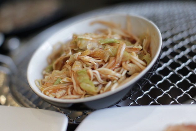 สลัดผัก (Salad) ของที่นี่ก็เป็นเมนูที่ดัดแปลงมา ดูผาด ๆ จะคล้าย ๆ กิมจิ แต่มีมะละกอสับแบบส้มตำใส่มาด้วย เป็นเครื่องเคียงที่ตักกินได้ตลอดรายการ
