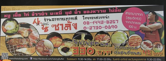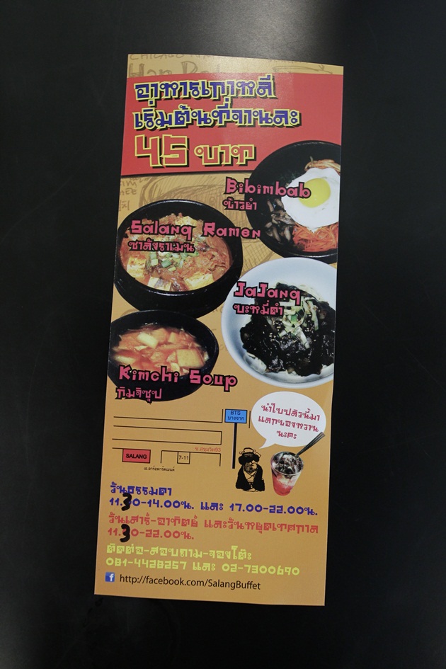 ช่วงนี้เฉพาะที่ ร้าน ซาลัง ( Salang ) สาขาสุขุมวิท 93 กำลังมีโปรโมชั่น มา 4 คน จ่ายแค่ 3 คน และบุฟเฟ่ต์ รวมเมนูข้าวยำ เพียงหัวละ 330.- เท่านั้น รับสิทธิ์ง่ายๆ เพียงเข้าไปกด Like แฟนเพจ คลิกที่นี่ มา ลองดูเมนูกันหน่อย เมนูมีแค่แผ่นเดียว หน้าหนึ่งเป็นเมนูบุฟเฟต์ อีกหน้าเป็นอาหารจานเดี่ยว ดูรายการอาหารไม่มาก แต่ทำไมพอสั่งมาแล้วโต๊ะแทบไม่พอวาง