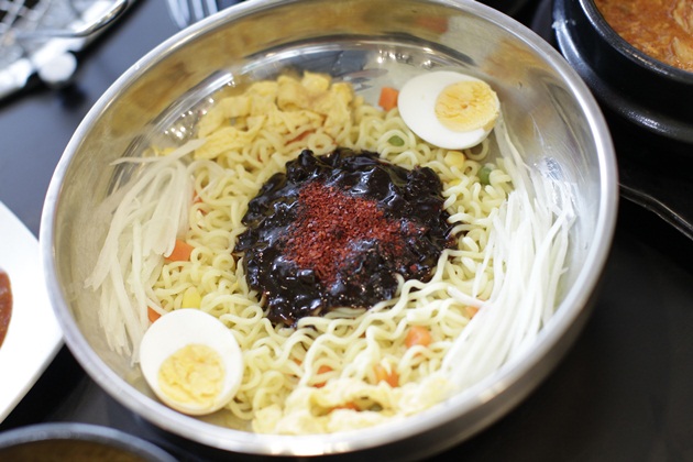 บุฟเฟต์สอบผ่านฉลุย มาดูอาหารจานเดี่ยวกันบ้าง ราคาก็ไม่แพง เริ่มต้นแค่ 45 บาทเท่านั้น มีเด็ด ๆ หลายรายการ เช่น บะหมี่ดำ (Jajang) เป็นเมนูใหม่ล่าสุดของ ร้าน ซาลัง ( Salang ) ที่ไม่มีเนื้อสัตว์ เมนูนี้หน้าตาดี มีซอสสีดำสนิทที่ทำจากถั่วดำ ราดมาบนบะหมี่ พร้อมเครื่องเคียงผัก และไข่ต้ม ก่อนจะรับประทาน พนักงานเขาจะมาลงมือคลุกให้เข้ากัน จนเส้นบะหมี่กลายเป็นสีดำ ชิมแล้วรสอร่อยมาก เข้ากันอย่างประหลาด แปลกดี