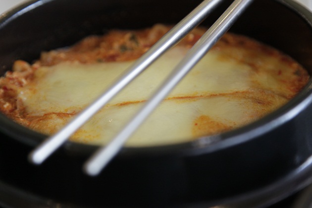 ที่ชอบอีกรายการคือ บะหมี่ใส่ชีส (Salang Ramen Cheese) ชีสเป็นแผ่น ๆ ใหญ่ ๆ โปะมาบนชามบะหมี่ร้อน ๆ เวลารับประทานชีสจะละลายผสมผสานกับน้ำซุปที่กำลังเดือดปุด ๆ เวลาคีบมันจะเหนียว ๆ ยืด ๆ เกาะเส้นบะหมี่ แต่อร่อยน่าดู และชามที่ใส่มาก็เป็นชามเก็บความร้อน จะทานกันอ้อยอิ่งแค่ไหน อาหารก็ยังร้อนน่ากินอยู่ตลอด เด็ก ๆ น่าจะชอบเมนูนี้เหมือนกัน ทางร้านบอกว่าเมนูนี้ลูกค้าบางรายแอบจำไปทำเองที่บ้าน แล้วกลับมาสารภาพว่าทำยังไงก็ไม่เหมือน ดังนั้นก็มากินที่ร้านเค้าทำให้ง่ายกว่าแยะ