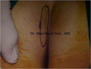 แต่ตำแหน่งที่ เค้าชอบคือ ร่องก้น !! โดยให้เหตุผลว่า ชั้น dermis ( ชั้นหนังกำพร้า ) บริเวณนี้หนาและ แข็งแรงกว่าบริเวณอื่น ( จริงๆ ถ้าถามว่าบริเวณไหน ของร่างกายที่มี ผิวหนังชั้น dermis หนา สุด ตำตอบคือ ผ่ามือ ผ่าเท้าครับ ---- แต่บริเวณนี้ไม่เหมาะที่จะเอามาใช้ทำอย่างอื่น นอกจากการหยิบจับเดินครับ หมอเลยคิดว่า หมอเกาหลีแกเลยเลือกตำแหน่งรองๆลงไป )