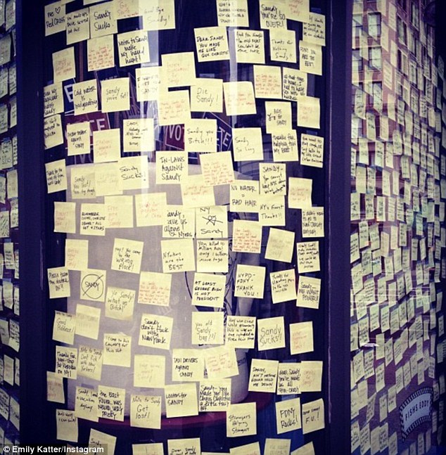 กระดาษโน้ตให้กำลังใจแก่ผู้ประสบภัยแซนดี้