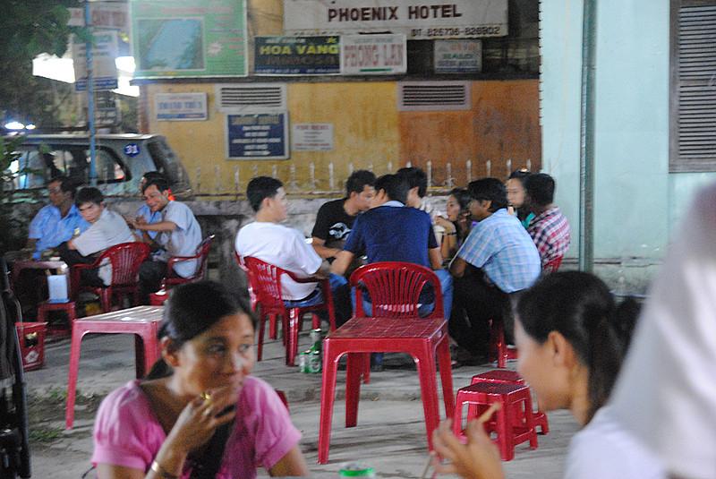 โต๊ะที่ร้านอาหารเวียดนาม จะเตี้ยๆหน่อยนั่งลำบากนิด ทันใดนั้นเองแม่ค้าเดินมาถามว่าเรามาจากไหน เราบอกว่้าประเทศไทย