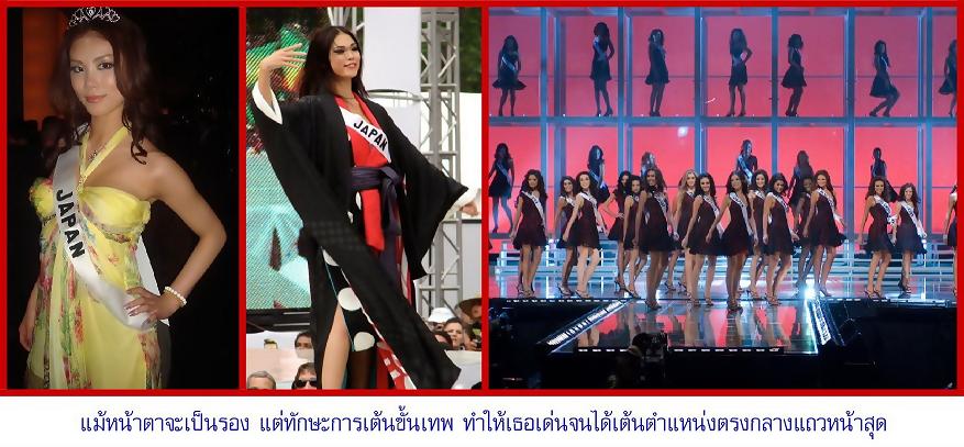 เมื่อได้ตำแหน่ง ชะตากรรมของริโยะก็ไม่ต่างจาก อะคิโคะ โคะจิมะ นางงามจักรวาลคนแรกของญี่ปุ่นครับ ถูกพายุคำวิจารณ์โหมกระหน่ำใส่ว่ามีความสวยไม่พอกับตำแหน่ง แม้กระทั่งนางงามจักรวาลปีก่อนเองก็ดูไม่ค่อยพอใจนัก ทำมงกุฎร่วงตอนมอบตำแหน่ง แม้ความสวยของริโยะอยู่ในระดับที่ทำให้ผู้ชายแท้มองเหลียวหลังน้ำลายยืดได้ก็จริงอยู่ แต่เมื่อเทียบมาตรฐานนางงามแล้ว เธอก็ไม่ถึงขั้นที่จะจัดอยู่ในกลุ่ม “สวยมาก” ซึ่งริโยะคงเจอการไม่ยอมรับในลักษณะนี้มามากตอนเรียนเต้นที่เมืองนอก ดังนั้นเธอจึงเลือกที่จะยิ้มรับกับความเป็นจริงที่เกิดขึ้น เพื่อขอโอกาสให้เธอได้พิสูจน์ตัวเอง สุดท้ายความสามารถที่ติดตัวเธอ ก็ช่วยให้เธอคว้ามงกุฎมาสวมไว้ได้ตามสัญชาตญาณนักรบแดนอาทิตย์อุทัย