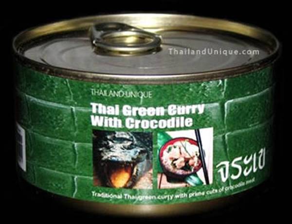 แกงเขียวหวานจระเข้กระป๋อง - ตามข้อมูลแจ้งว่า หาซื้อได้ที่ประเทศไทยเท่านั้น