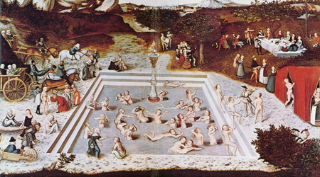 หรือ น้ำพุแห่งวัยเยาว์ เป็นเรื่องเล่าของนักสำรวจสเปน ที่ได้พบเห็นน้ำพุศักดิ์สิทธิ์ซึ่งผู้ใดได้ดื่มกินจะกลับเป็นหนุ่มสาวได้ โดยเรื่องนี้เริ่มขึ้นเมืองนักสำรวจสเปนชื่อดังนามฮวน ปองเซ เดอ ลีอองต้องการเดินทางไปในดินแดนแห่งใหม่คืออเมริกา ระหว่างทางเขาได้ยินชาวพื้นเมืองที่กล่าวถึงน้ำพุนี้อย่างน่าสนใจ เขาเลยออกตามหา โดยสถานที่แรกที่ไปคือบริเวณที่ตั้งของรัฐฟลอริด้าในปัจจุบัน ไปจนถึงเกาะแห่งหนึ่งคือเกาะบิมินี่ แต่กระนั้นเขาก็ไม่เคยเห็นน้ำพุที่ว่านี้ด้วยตาของตนเองเลยชั่วชีวิต แต่เขาก็เชื่อว่ามันมีอยู่จริง จึงนำเรื่องของมันเล่าแก่เพื่อนๆ นักเดินเรือจนเป็นที่แพร่หลายแก่หมู่นักเดินเรือชาวสเปนในยุคสำรวจโลกในเวา ต่อมา ปัจจุบันน้ำพุแห่งวัยเยาว์กล่าวเป็นศัพท์ที่ที่อุปมาเกี่ยวกับแนวทางการค้น หาชีวิตที่จะทำให้ชีวิตมนุษย์ยืนยาวในทางวิทยาศาสตร์