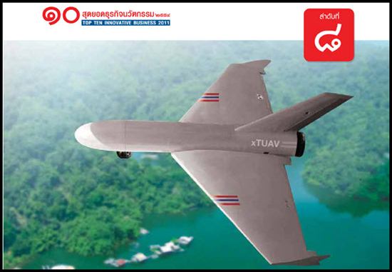 ฟังชื่ออาจจะตกใจเล็กน้อยกับอากาศยาน ไร้นักบิน แต่ว่ามีจริงๆ ค่ะ โดยนวัตกรรมนี้ช่วยทดแทนการนำเข้าอากาศยานไร้นักบินจากต่างประเทศได้กว่า 3,000 ล้านบาท โดยนำไปใช้ในการปฏิบัติภารกิจในหน่วยงานสำรวจ ลาดตระเวนในพื้นที่เสี่ยงภัย การติดตามสภาวะแวดล้อม รวมถึงการวางแผนกลยุทธ์ต่างๆ เช่น การทำฝนเทียม เป็นต้น โดยการนำวัสดุคอมโพสิตที่มีน้ำหนักเบามาใช้ในการผลิตโครง และพัฒนาระบบบังคับการบินและทิศทางผ่านสัญญาณดาวเทียม หรือ จีพีเอส (GPS) สามารถบันทึกภาพนิ่งและภาพเคลื่อนไหวส่งมายังสถานีภาคพื้นได้
