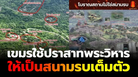 เขมร ดัดแปลงปราสาทพระวิหาร ให้กลายเป็นสนามรบเต็มตัว มีทั้งการติดตั้งอุปกรณ์ทางทหาร กล้องตรวจการณ์ ระบบแอนตี้โดรน รวมถึงโครงสร้างต่าง ๆ ที่ดูไม่เหมาะสมกับสถานที่ซึ่งควรได้รับการอนุรักษ์