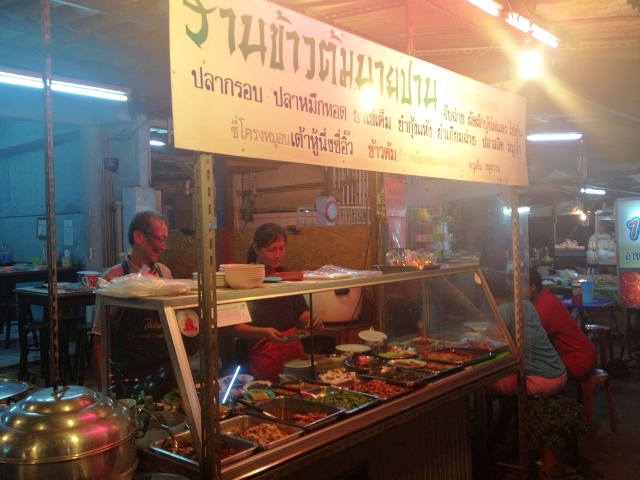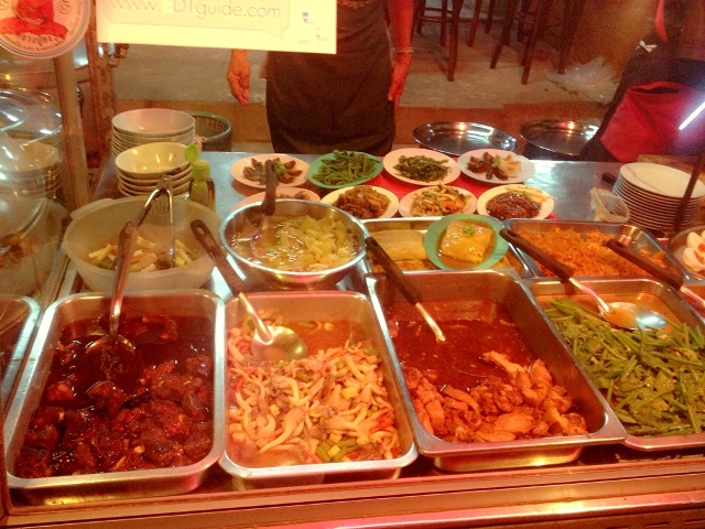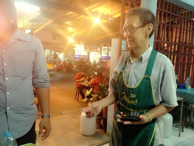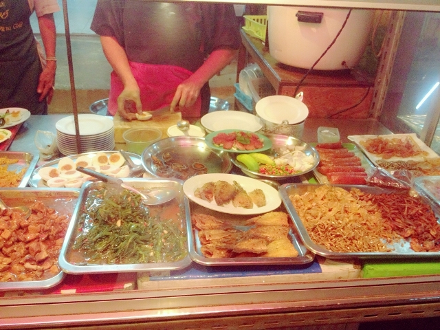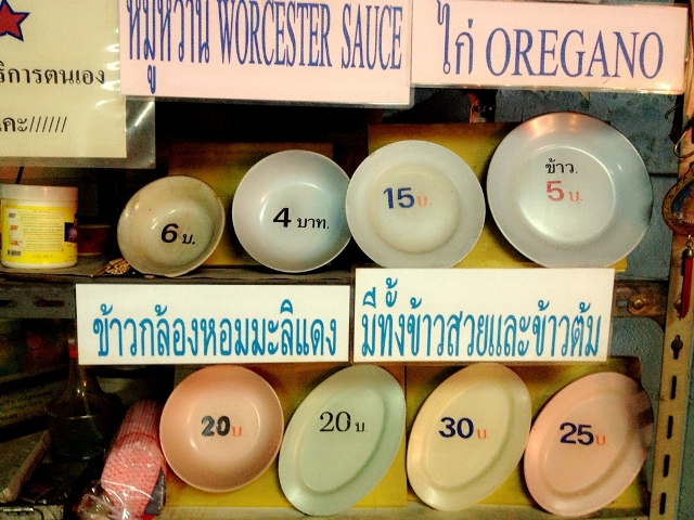 เจ้าของร้านน่าจะเป็นคนจีน อาหารบอกราคาตามขนาดถ้วยอย่างชัดเจน