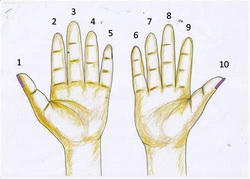 - ให้แบฝามือหันหน้าหาตัวเอง กางนิ้ว ทั้ง 10 นิ้ว