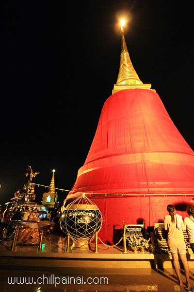 ผ้าแดงห่มองค์เจดีย์สีทองสวย สงบ สง่า