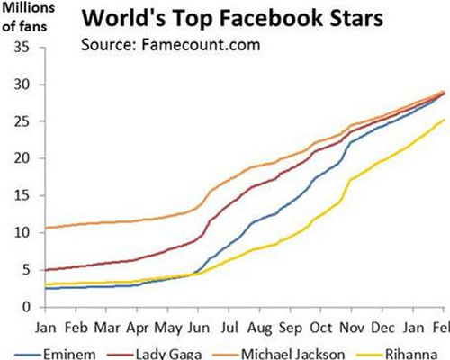 รูปด้านล่างเป็นกราฟจำนวน Fan ใน Facebook ของทั้งสองคนที่ทาง Eminem มาตี้ตื้นเอาช่วงหลังนี้เองครับ