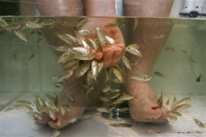 ผู้หญิงหลายคนพร้อมทำทุกอย่างเพื่อความงามของเท้า รวมทั้งใช้เท้าให้อาหารปลา ในบางประเทศของเอเชีย นิยมมานานแล้วที่จะ แช่เท้าในน้ำ เพื่อให้ปลามารุมตอดกินผิวหนังที่ด้าน เพื่อให้เท้านุ่มแต่วิธีนี้ฮิตมากในสหรัฐฯ หลังจากจอห์น โฮ เจ้าของร้านทำผมในเวอร์จิเนีย ประกาศให้บริหารด้านนี้แก่ลูกค้า 5,000 คนในช่วง 4 เดือน ไม่นานหลังจากนั้น ก็มีบรรดา ช่างเสริมสวยลอกเลียนแบบ”โฮ” กันเป็นแถว มีการสั่งซื้อปลานับพันๆตัว มาช่วยทำให้ผิวหนังที่เท้าอ่อนนุ่มขึ้น ก่อนทำเล็บตามปกติโดยช่าง ทำเล็บ แต่ช่างเสริมสวยในรัฐเท็กซัสกับวอชิงตันโชคไม่ดี เพราะสองรัฐนี้รีบออกคำสั่งห้ามใช้วิธีนี้ด้วยเหตุผล ด้านสุขอนามัย แต่นายโฮ ยังคงมาแรงด้วยบริการนี้