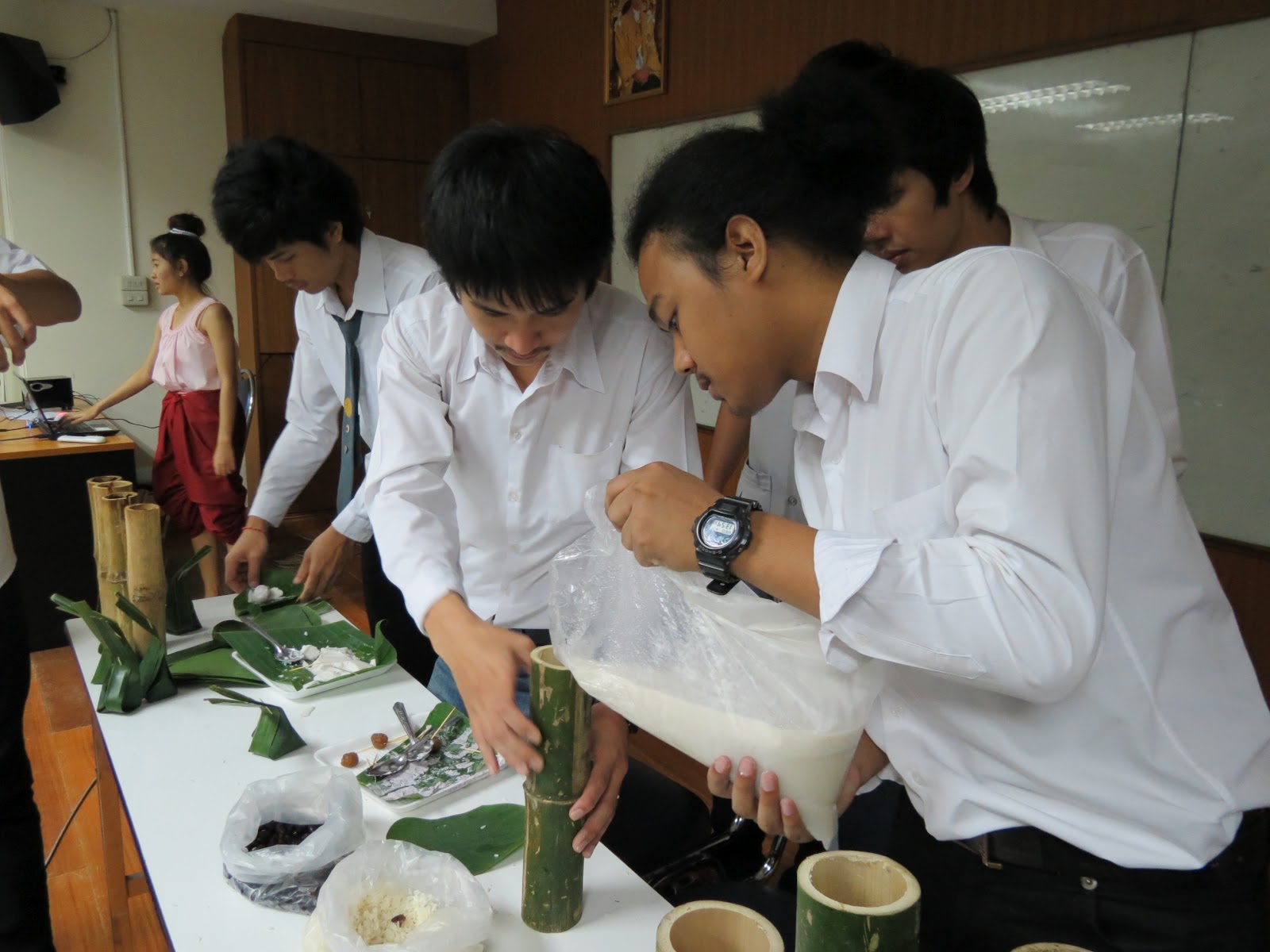 การใส่ข้าวเหนียว กะทิ เครื่องของข้าวหลามนั้นควรอยู่ภายใต้การดูแลของ ศาสตราจารย์ ไม่เช่นนั้น น้ำกะทิอาจมากไป น้อยไป มีผลต่ออนาคตของข้าวหลามได้