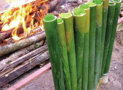 ระหว่างที่รอไม้ไผ่มานั้น คนที่อยู่ข้างหลังก็อย่ามัวดู สี่ยอดกุมาร ทางยูทูปอยู่ ให้เร่งเอาข้าวเหนียวไปแช่น้ำ คั้นกะทิ เตรียมเครื่องของข้าวหลาม อาทิ ถั่วดำ เม็ดบัว ใดๆ ไม่งั้นถ้าผัวกลับมาเจอเมียนอนแอ๋งแม๋งไม่ทำไร อาจโดนฟาดกับกระบอกข้าวหลามได้